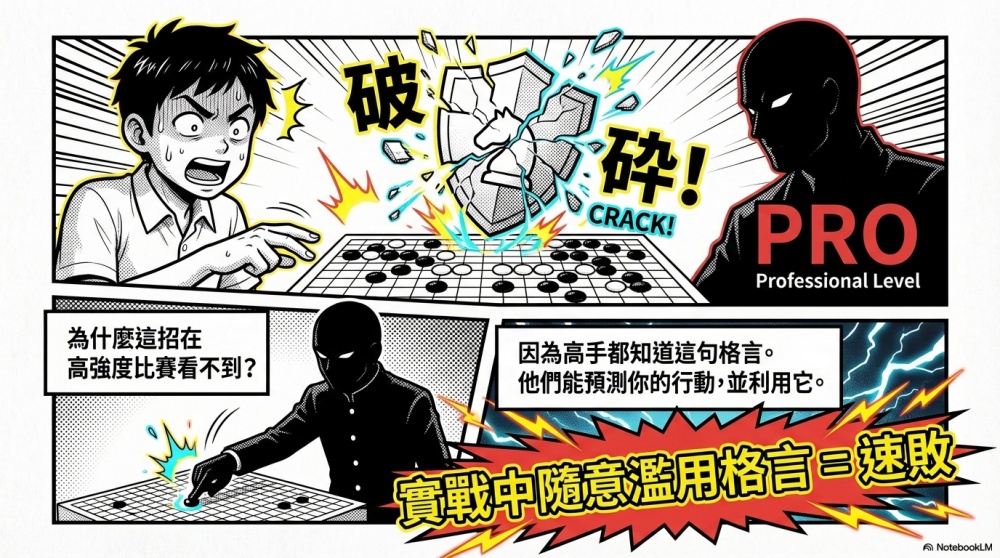 但當棋力成長到一定程度,就必須切換到獨立思考的狀態,去拆解、質疑、再定義這些格言的適用範圍。