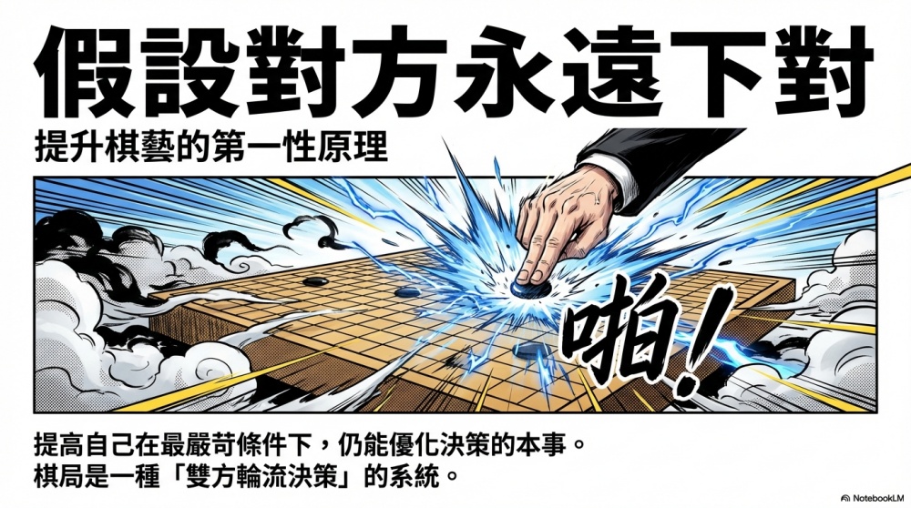 所以,提升棋藝水平的第一性原理是:「假設對方永遠下對」,提高自己在最嚴苛條件下,仍能優化決策的本事。