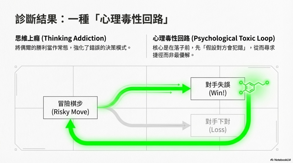 我忽然意識到,這不單純是下錯棋的問題,而是一種「假設對方會犯錯」的心理毒性回路。