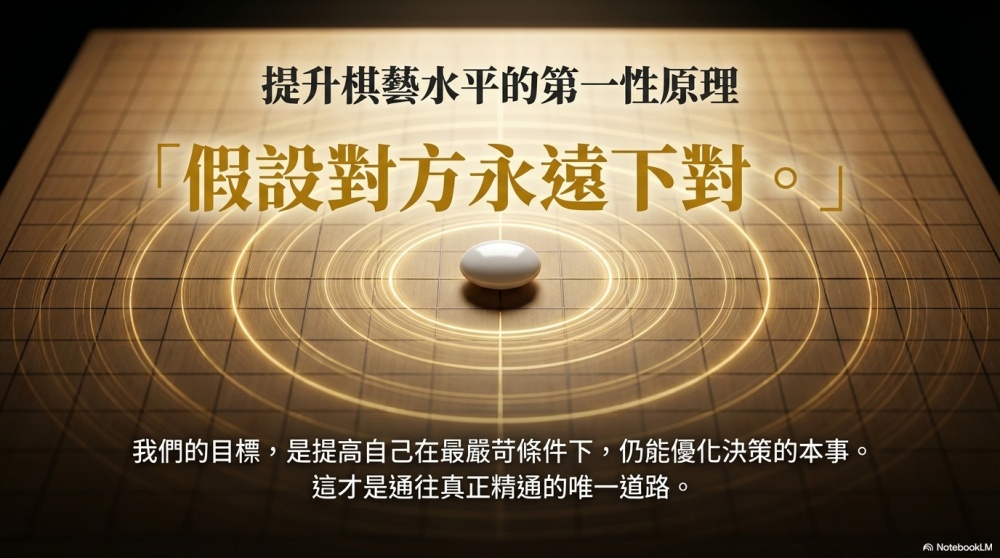 許多棋友花了很長時間上網下棋,卻往往不見水平有所增長,這種停滯不前的背後,隱藏著一個極具破壞力的習慣︰「在落子之前,先假設對方會下錯棋。」