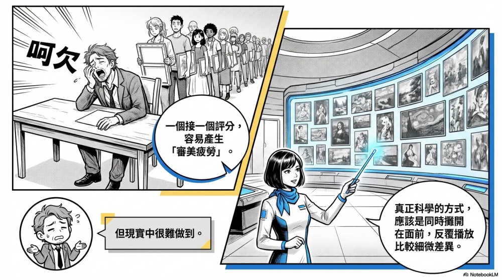 若完全排除主觀偏好,藝術可能會陷入機械化的指標競爭,失去突破傳統的可能性。