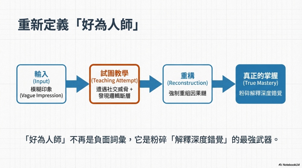 在輸出的過程中,學員會突然「卡住」,那個「卡住」的地方,就是他原本以為懂、實際上卻是空白的「邏輯斷層」。
