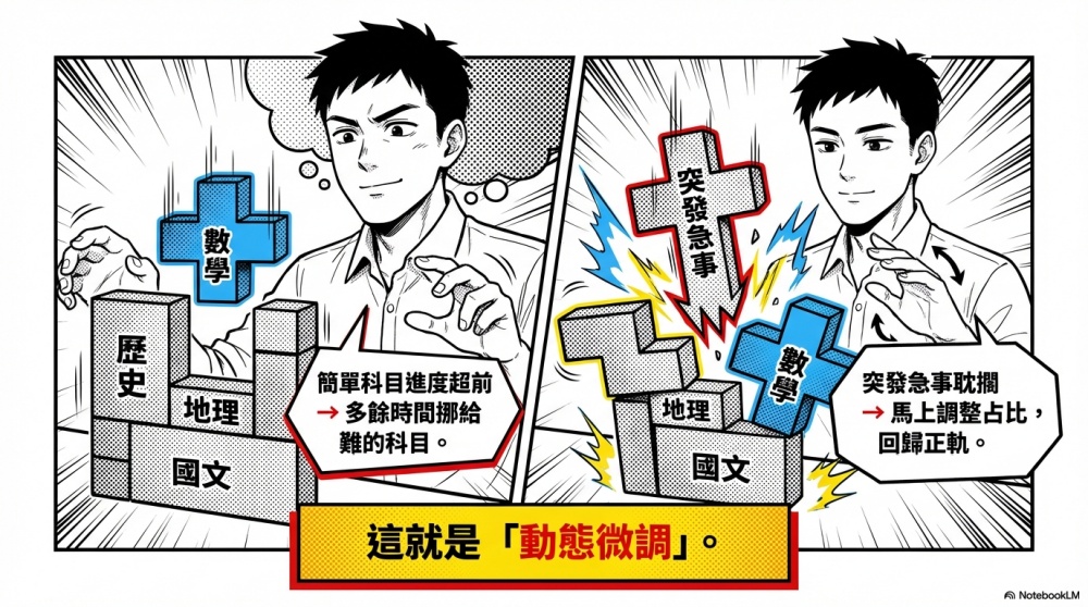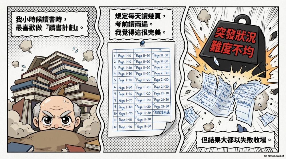 不只是讀書,日常生活中的許多計劃,你會發現往往到最後都無法順利達標,因為靜態計劃本來就容易在動態系統中崩潰。