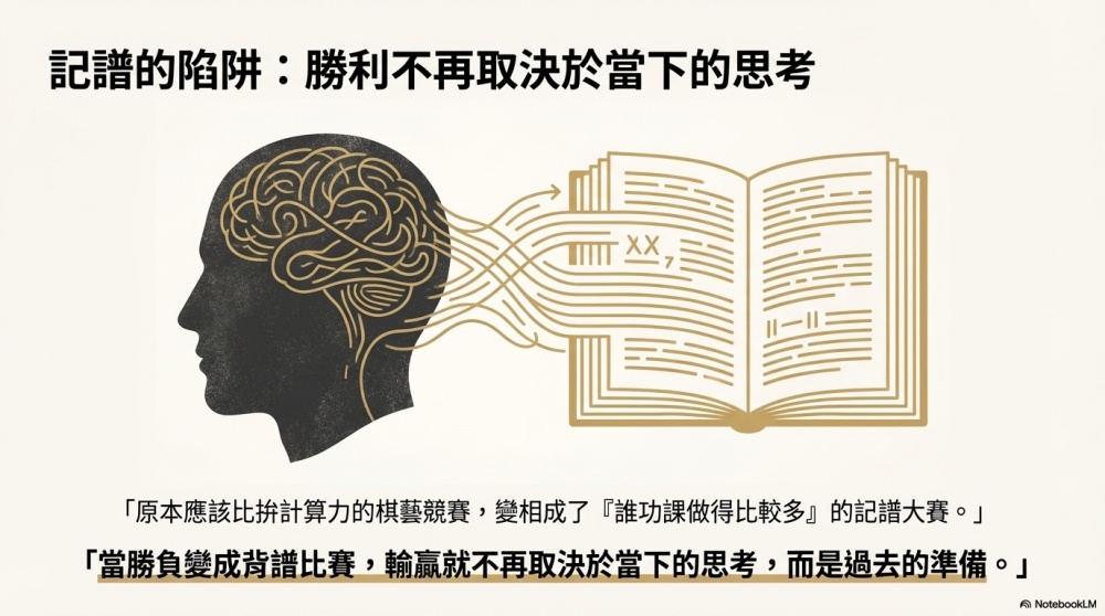 使得原本應該是以比拚計算力為主的棋藝競賽,變相成了“誰功課做得比較多”的記譜大賽。