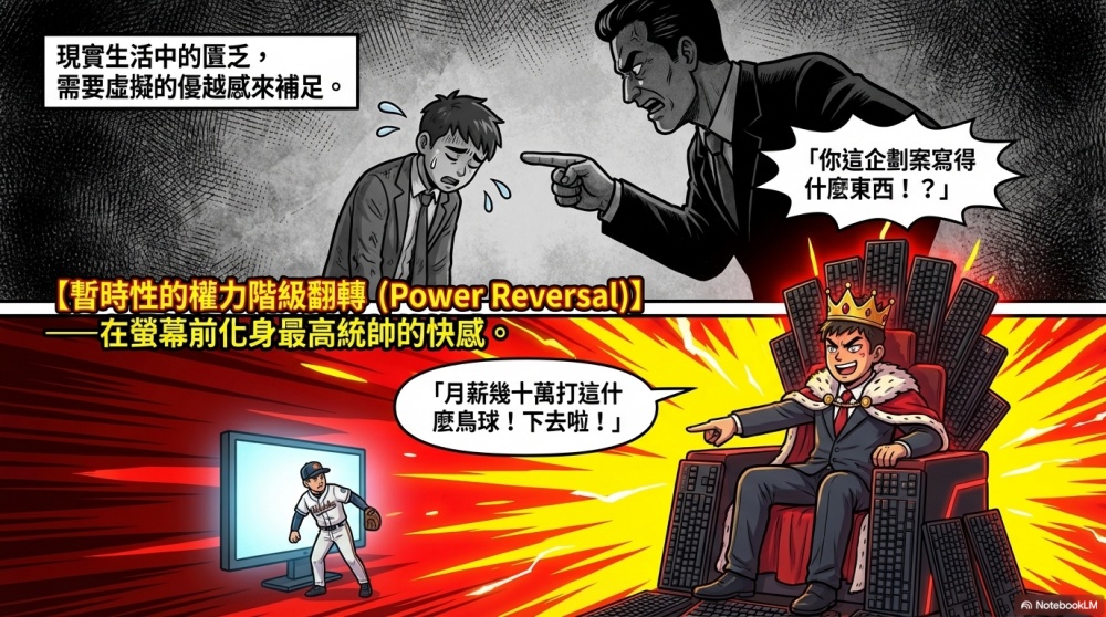 一個平時唯唯諾諾的職員,在螢幕前可以化身為最高統帥,指責領著高薪的球員「不會打球」。