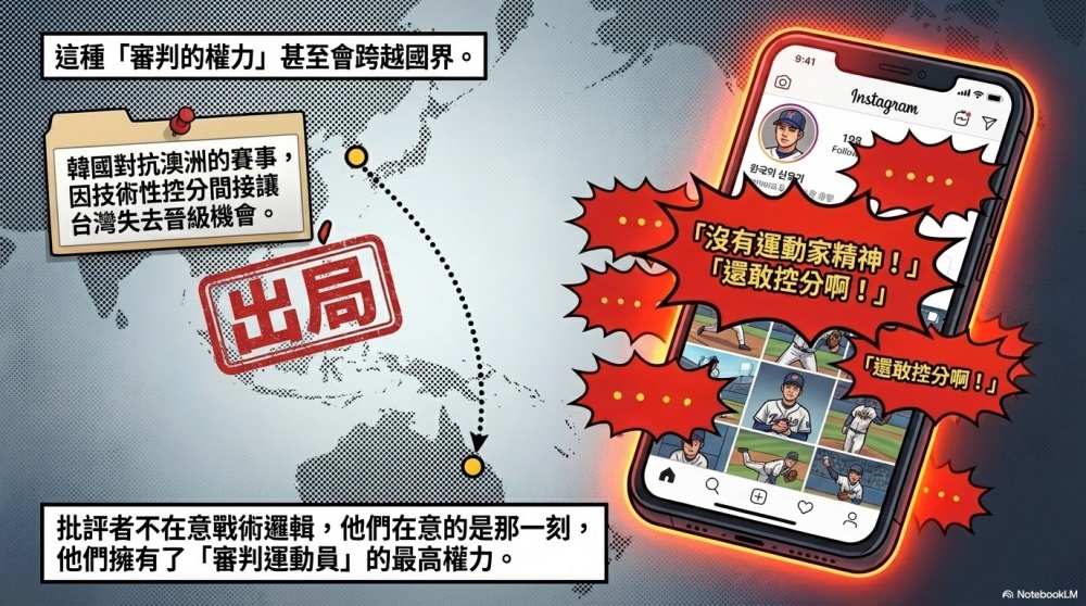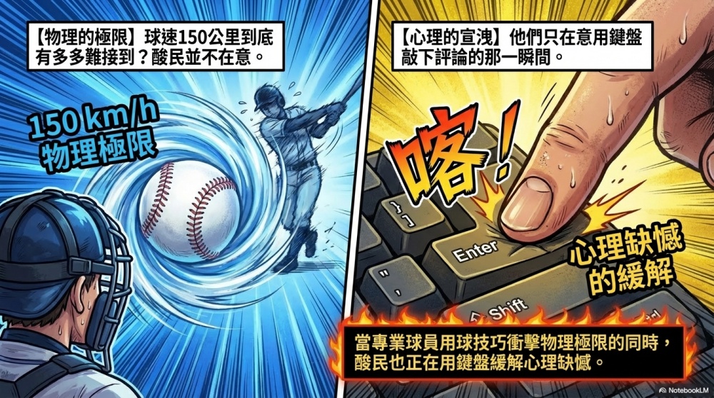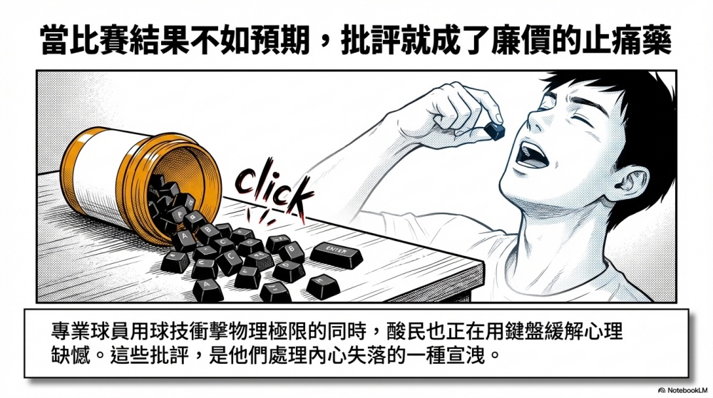 對某些酸民而言,體育賽事就像是一面鏡子,照出的不是球技的優劣,而是他們內心懷才不遇的投射。