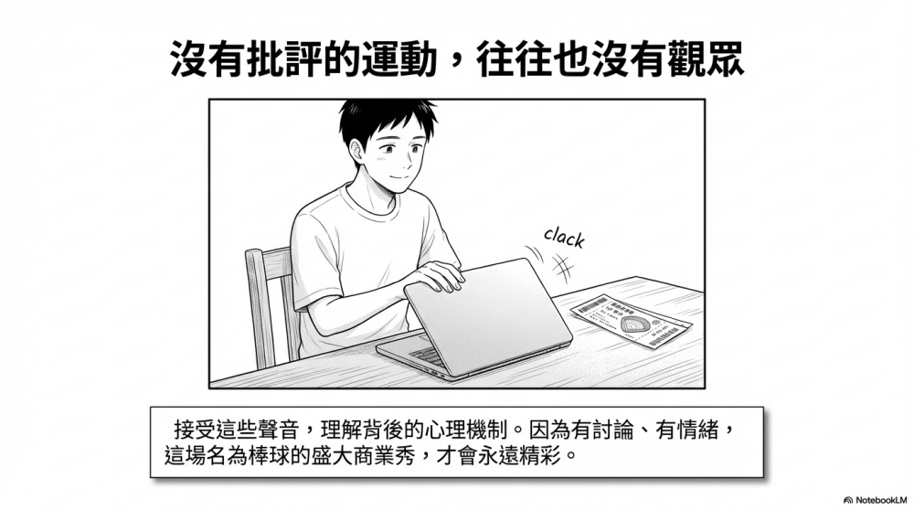 其中,「批評」其實是一種門檻相當低的參與方式。並不是每一個人都有時間長期追蹤球隊、購買商品,或深入研究戰術,但幾乎任何人都可以在比賽結束後發表自己的看法。
