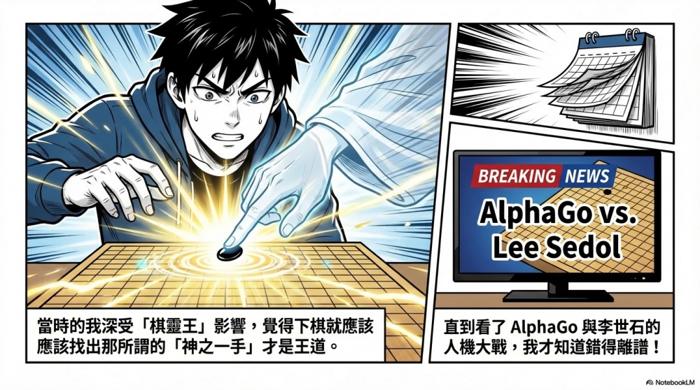 聽到這句建議的當下,我感到有點嗤之以鼻,當時的我深受圍棋動漫「棋靈王」的影響,覺得下棋不就是應該要找出那所謂的“神之一手”才是王道嗎?