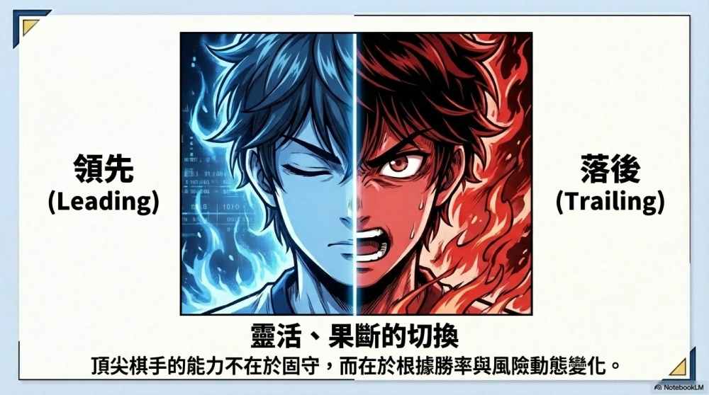 一個頂尖的棋手,其能力不在於固守任一策略,而在於能像前面內容所說的,根據勝率與風險的動態變化,在兩種截然不同的決策模式之間進行靈活、果斷的切換。